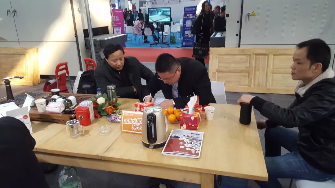 建诚伟业邱建总经理展会现场接受家具上下游的采访,